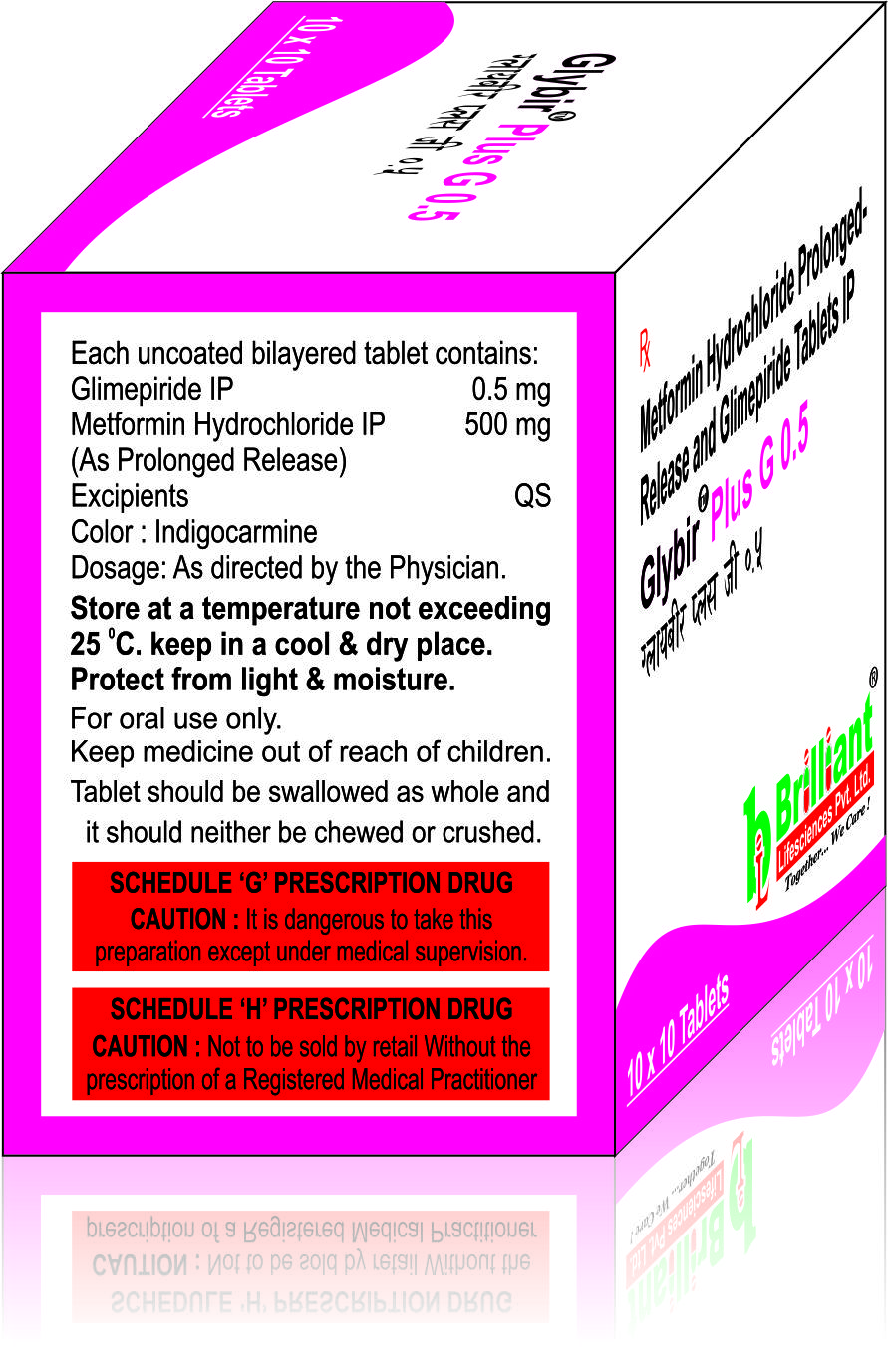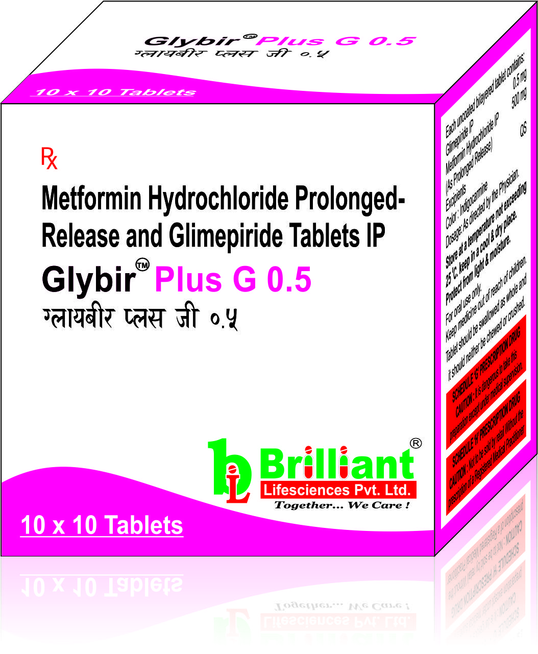 GLYBIR PLUS G0.5 Tablet is a combination of two antidiabetic medicines: Glimepiride and Metformin.Glimepiride is a sulfonylurea which works by increasing the amount of insulin released by the pancreas in order to lower the blood glucose. Metformin is a biguanide which works by lowering glucose production in the liver, delaying glucose absorption from intestines and increasing the body's sensitivity to insulin.