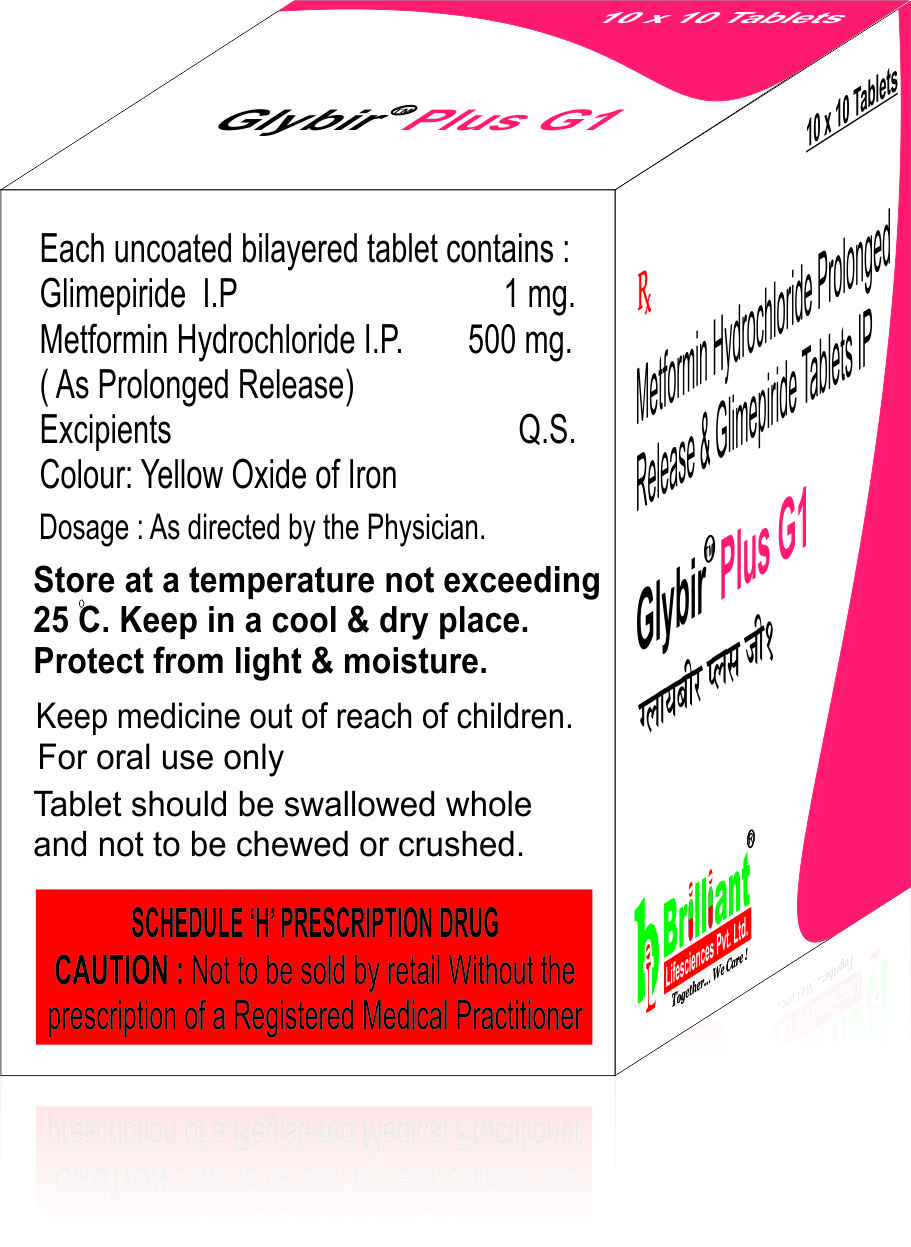 GLYBIR PLUS G1 Tablet is a combination of two antidiabetic medicines: Glimepiride and Metformin.Glimepiride is a sulfonylurea which works by increasing the amount of insulin released by the pancreas in order to lower the blood glucose. Metformin is a biguanide which works by lowering glucose production in the liver, delaying glucose absorption from intestines and increasing the body's sensitivity to insulin.