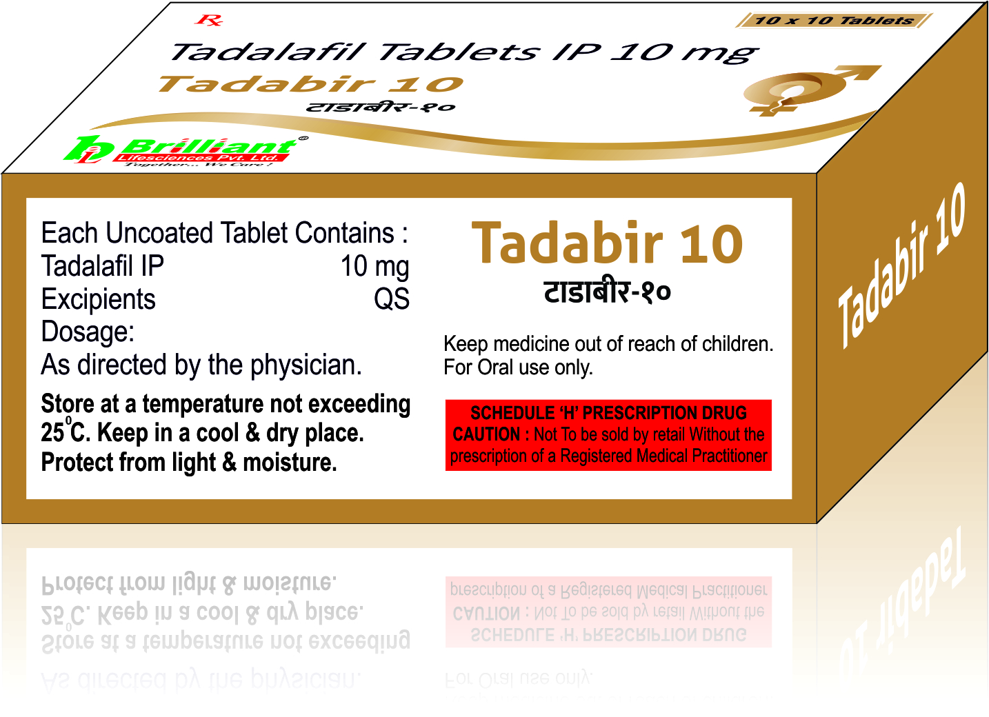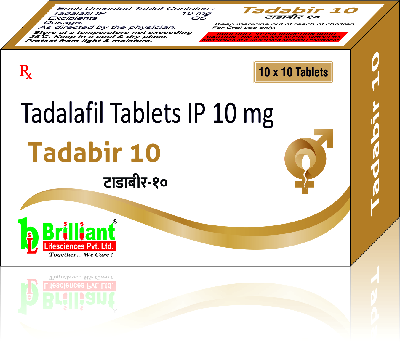TADABIR 10 Tablet is used to treat erectile dysfunction (ED) in men and pulmonary arterial hypertension (PAH). It increases blood flow to the penis to help men get an erection. In PAH, it relaxes or widens the blood vessels inside the lungs, which reduces blood pressure in the lungs.